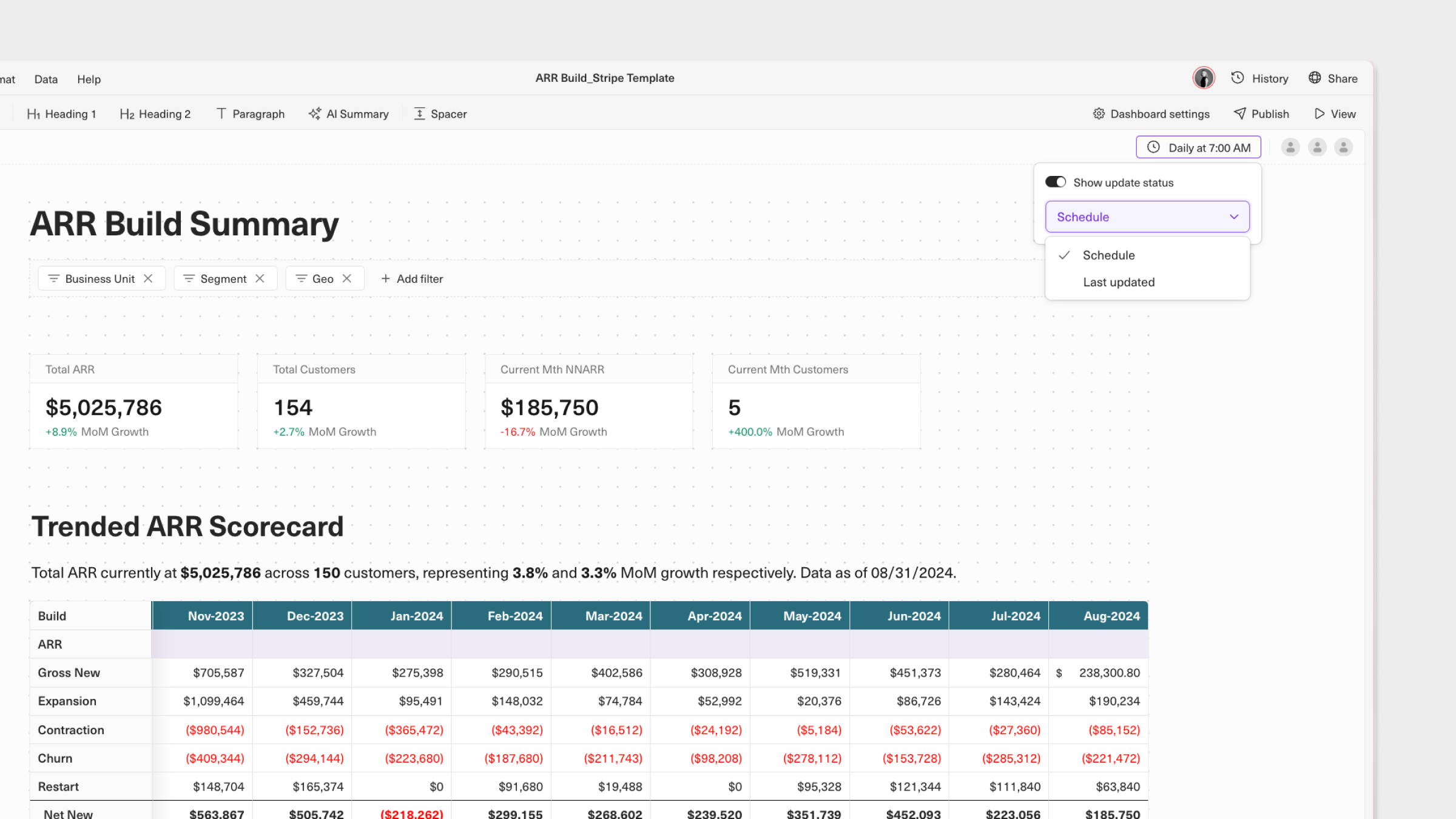 By default, the name alongside the logo is the name of your Workspace. You can change this by clicking the name to enter edit mode and typing in a new name.Display Last updated or Schedule