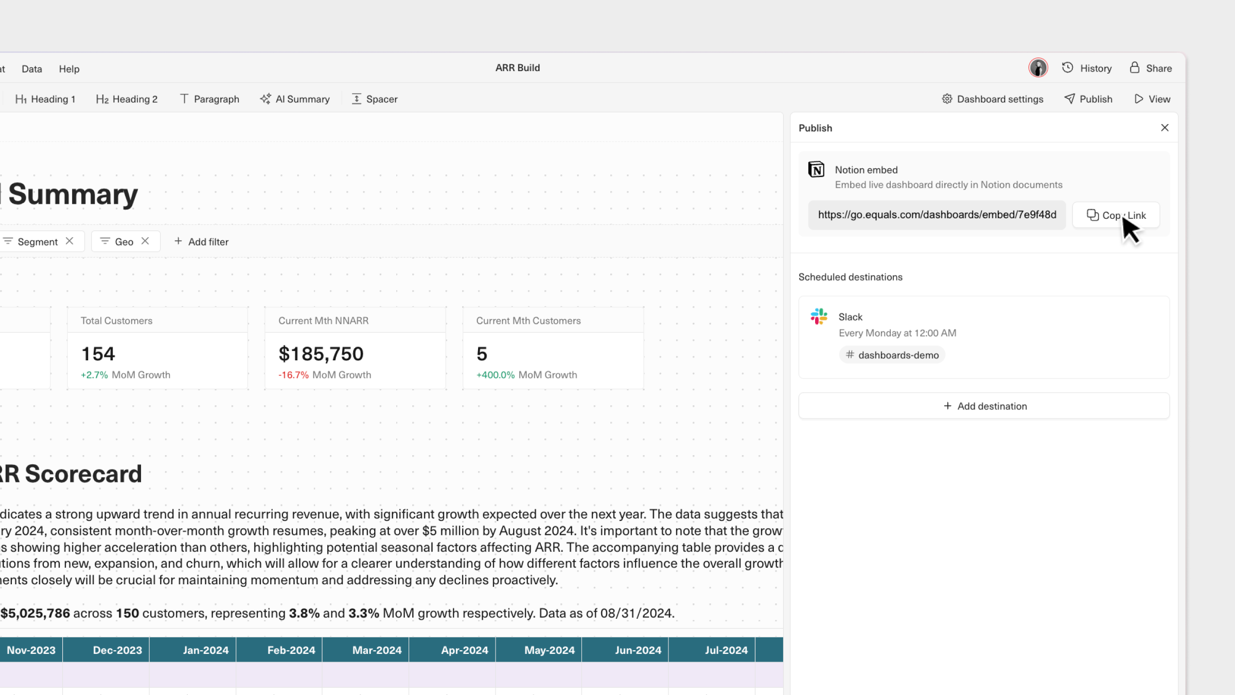 To embed your dashboard in Notion, first copy the link from thePublish panel.