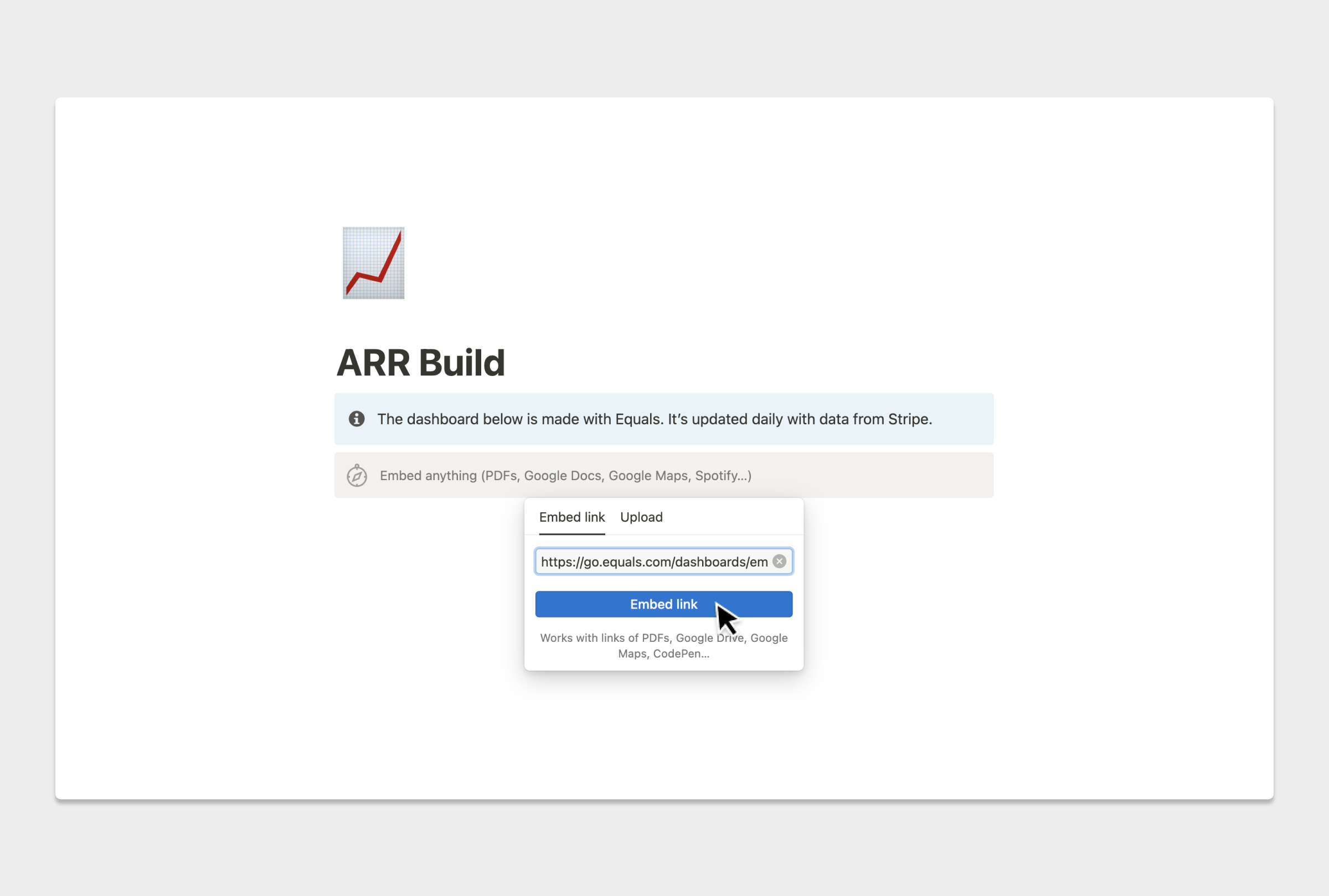 Then, in Notion, use the/ command to search for Embed link and paste the link to your dashboard from your clipboard.