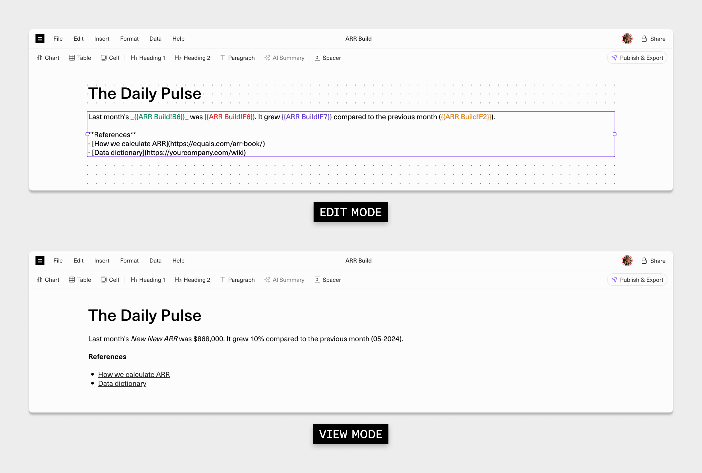 | B6 | Net New ARR | New New ARR | {{ARR Build!B6}} |